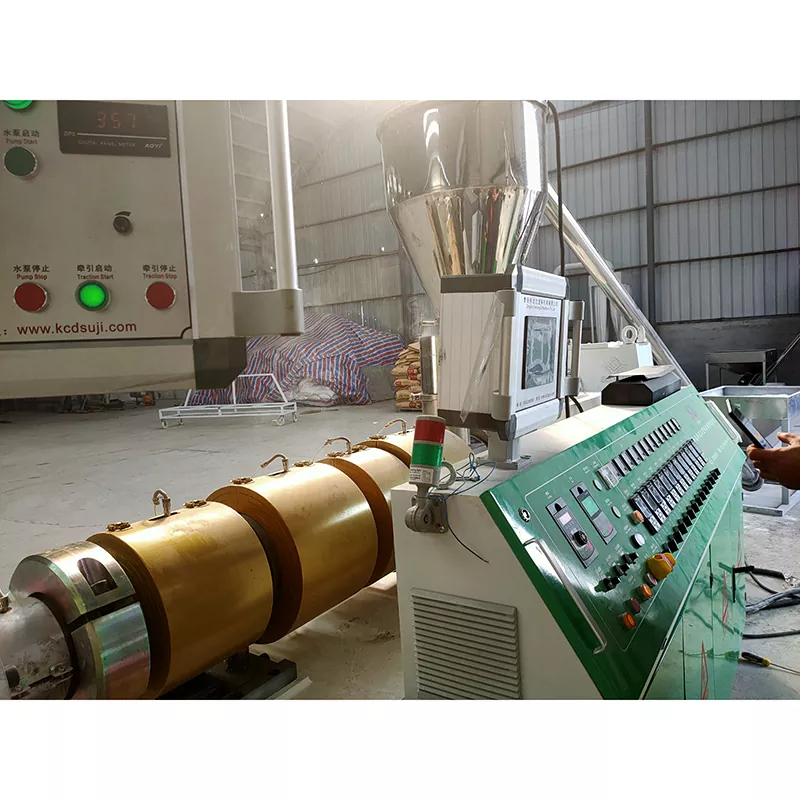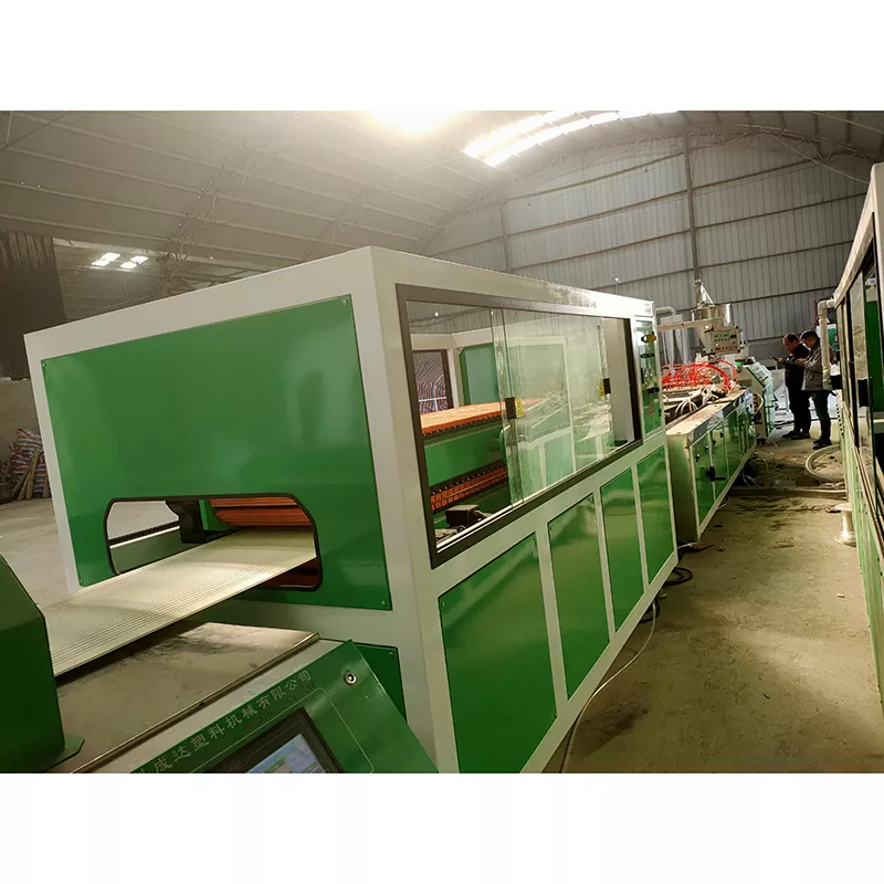 Artezteko makina, nahastailea, birringailua, torloju bikoitzeko estrusore konikoa, horma-moldea, horma hutsean moldatzeko plataforma, arakatzaile bikoitzeko trakzio-makina, hautsik gabeko ebaketa-makina automatikoa, deskarga automatikoko kodetzailea, linea osoa egonkor dabil, funtzionamendua erraza da eta porrot tasa baxua da.